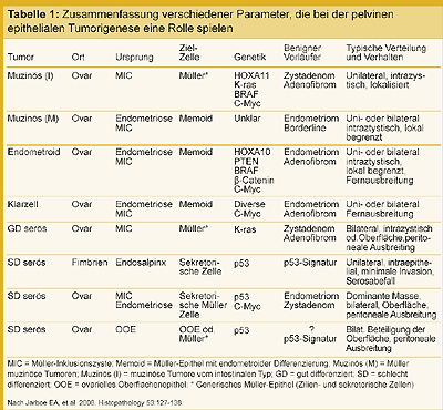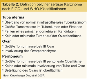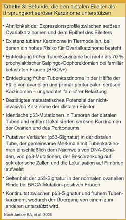 insbesondere Indizien für die Entstehung von Ovarialkrebs auch in der Tube angehäuft wurden (Tabelle 3) [10-15]. Ferner impliziert