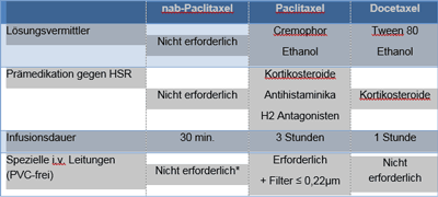 30-minütigen Infusion von nab-Paclitaxel nicht erforderlich [2]. Gerade bei den generischen